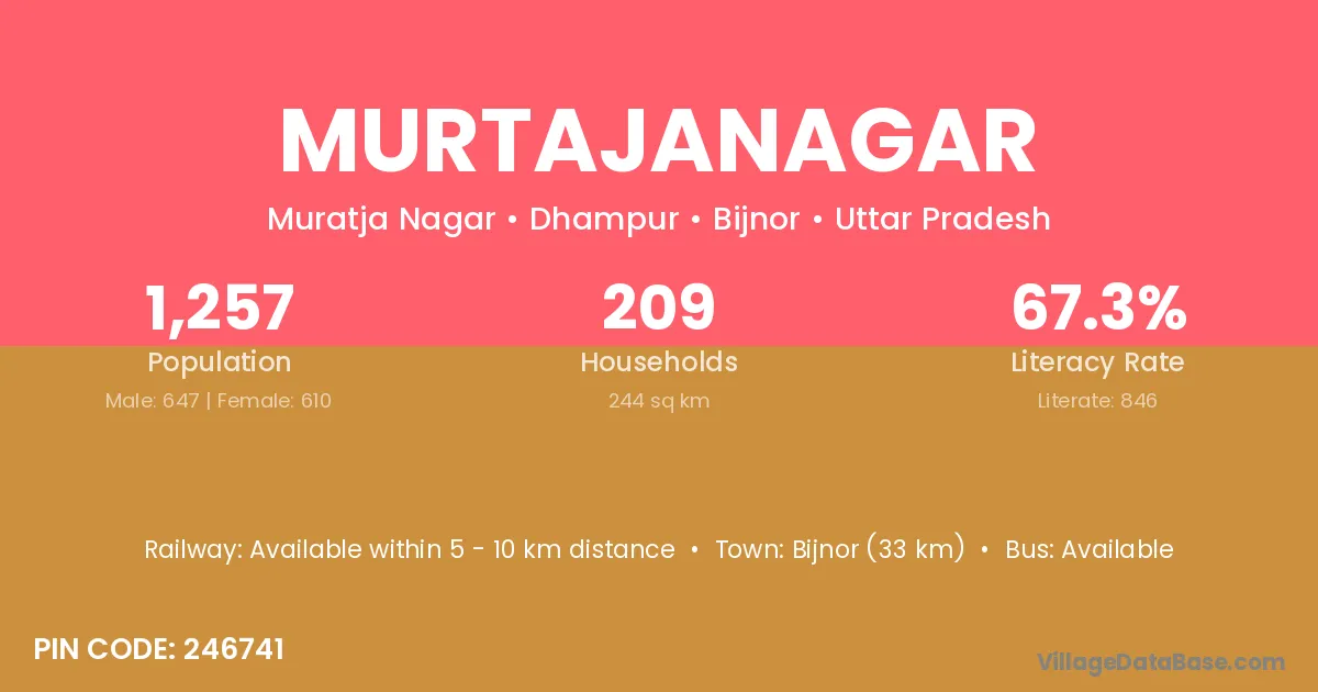 Bijnor (33 km) is the nearest town to Murtajanagar village for major economic activities and is located approximately 33 km away.