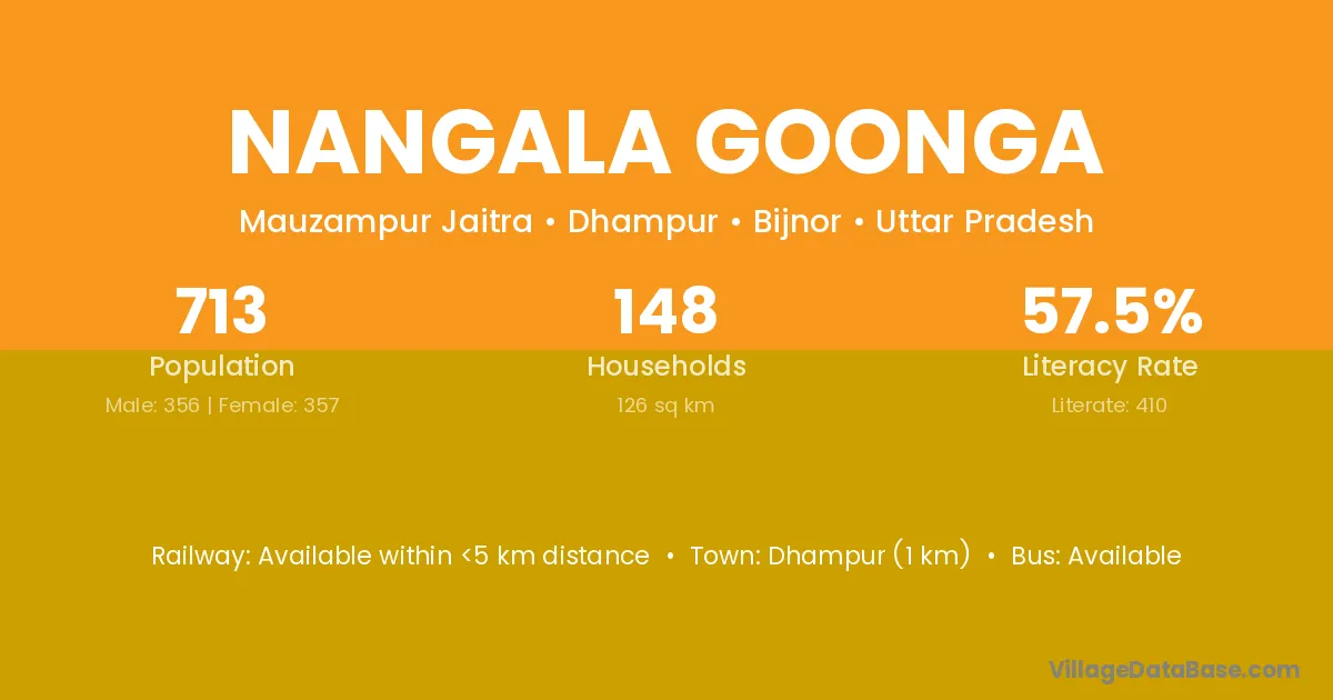 Dhampur (1 km) is the nearest town to Nangala Goonga village for major economic activities and is located approximately 1 km away.