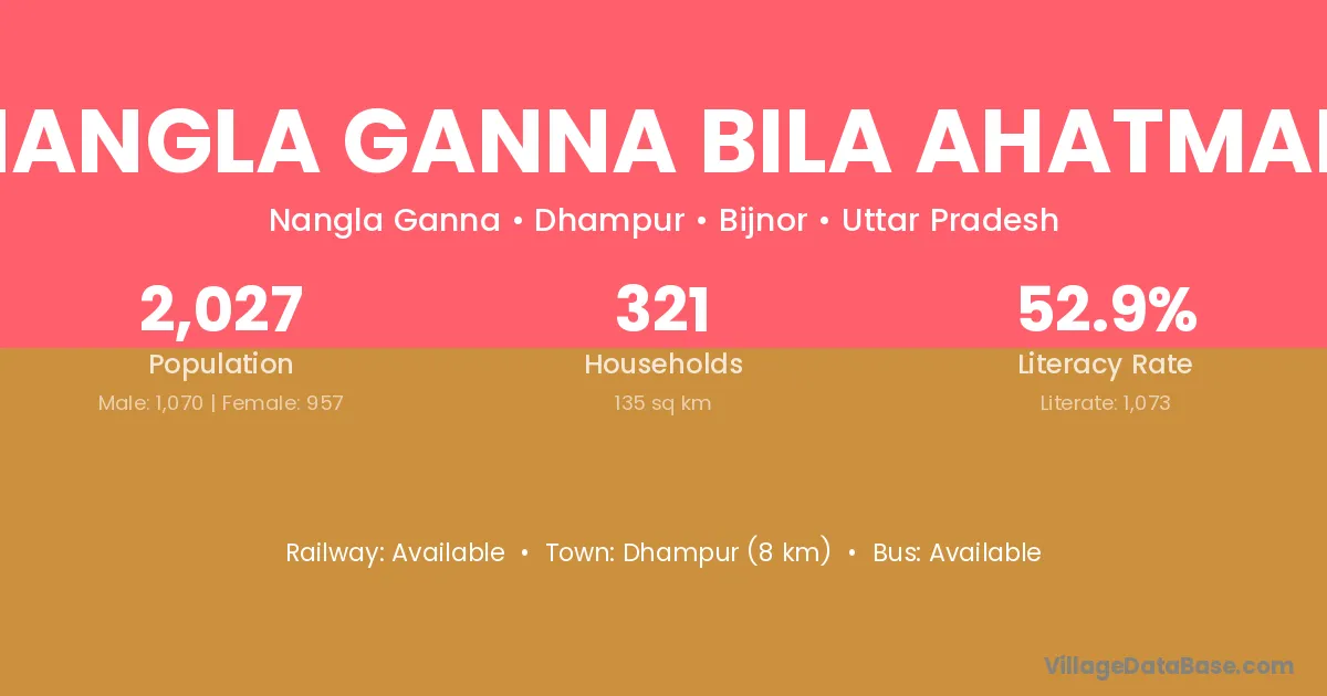 Nangla Ganna Bila Ahatmali village has a total population of 2,027 people, of which 1,070 are males and 957 are females.