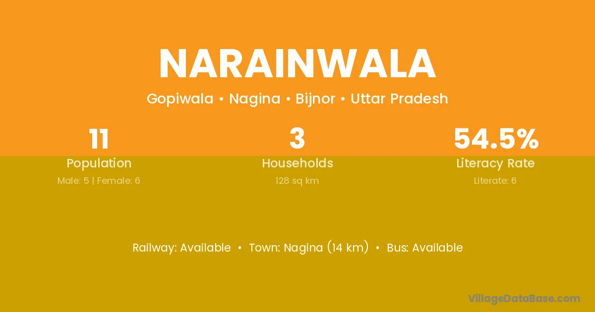 Narainwala village has a total population of 1,233 people, of which 647 are males and 586 are females.