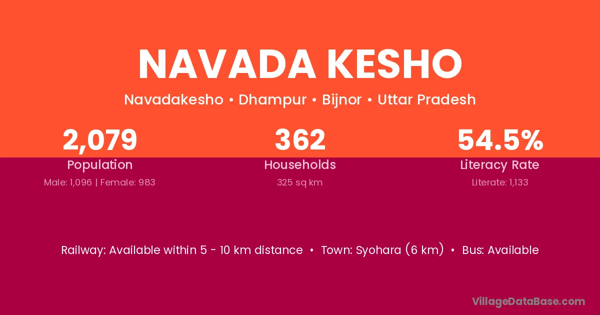 Syohara (6 km) is the nearest town to Navada Kesho village for major economic activities and is located approximately 6 km away.