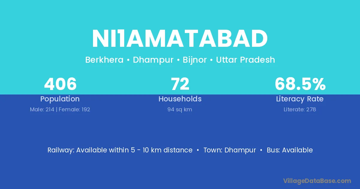 Dhampur is the nearest town to Ni1amatabad village for major economic activities