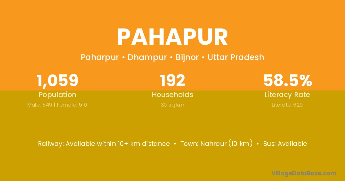 Nahraur (10 km) is the nearest town to Pahapur village for major economic activities and is located approximately 10 km away.