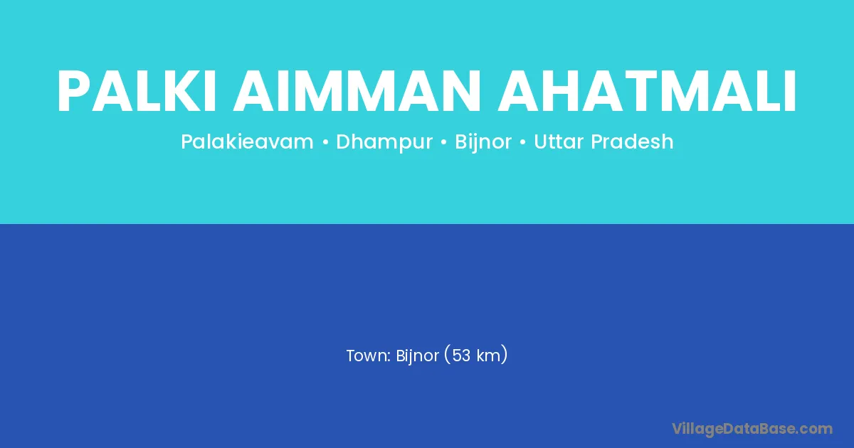 Bijnor (53 km) is the nearest town to Palki Aimman Ahatmali village for major economic activities and is located approximately 53 km away.