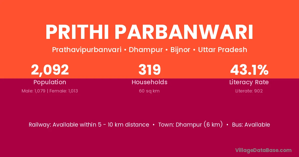 Dhampur (6 km) is the nearest town to Prithi Parbanwari village for major economic activities and is located approximately 6 km away.