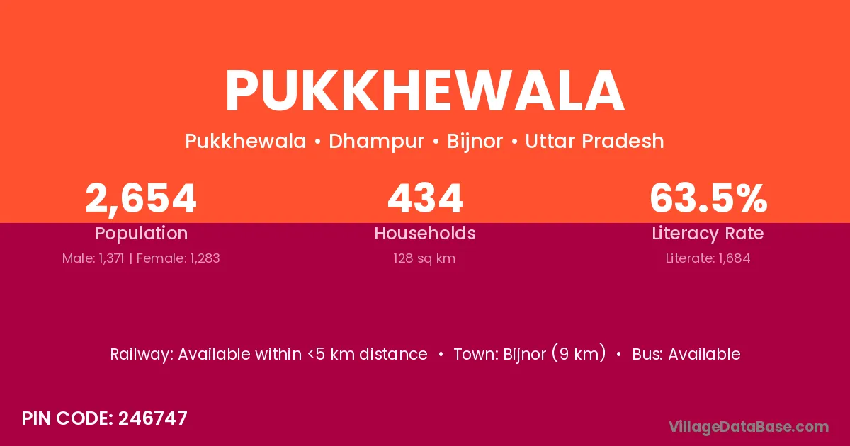 Bijnor (9 km) is the nearest town to Pukkhewala village for major economic activities and is located approximately 9 km away.