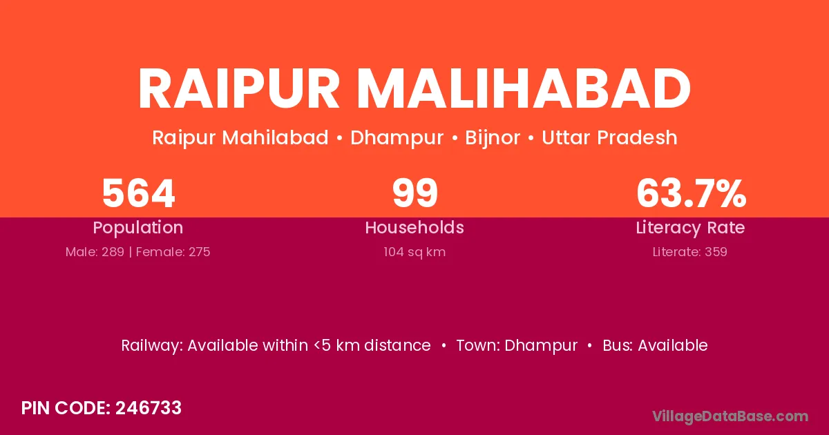 Dhampur is the nearest town to Raipur Malihabad village for major economic activities