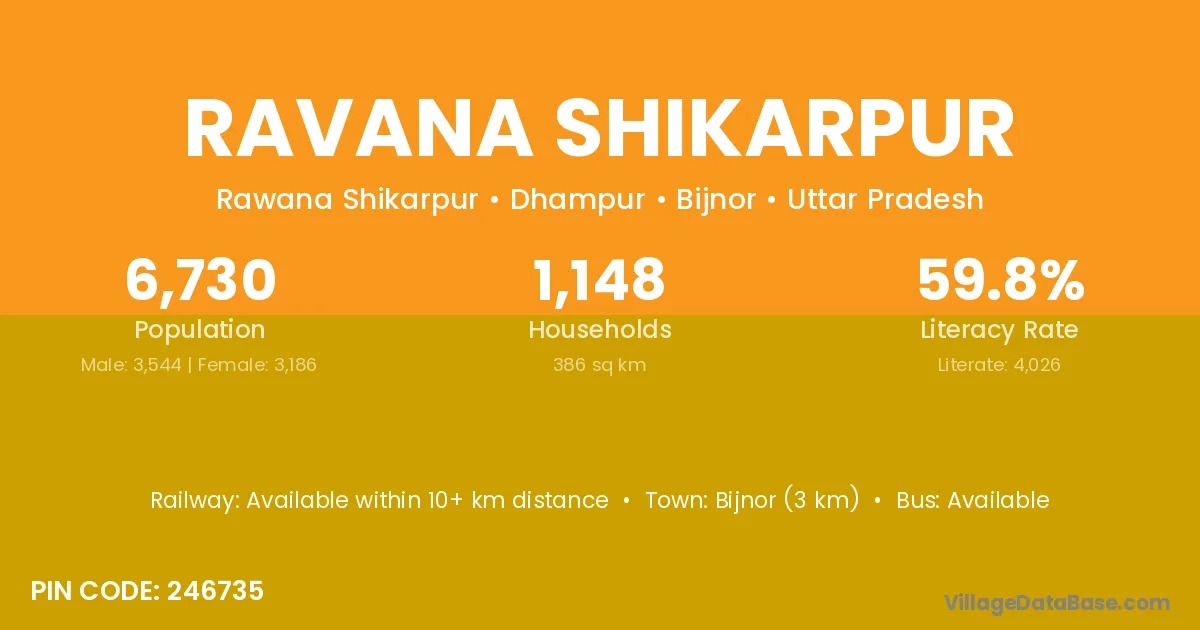 Bijnor (3 km) is the nearest town to Ravana Shikarpur village for major economic activities and is located approximately 3 km away.