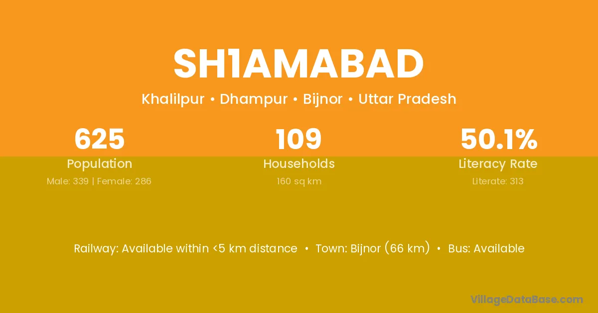 Bijnor (66 km) is the nearest town to Sh1amabad village for major economic activities and is located approximately 66 km away.