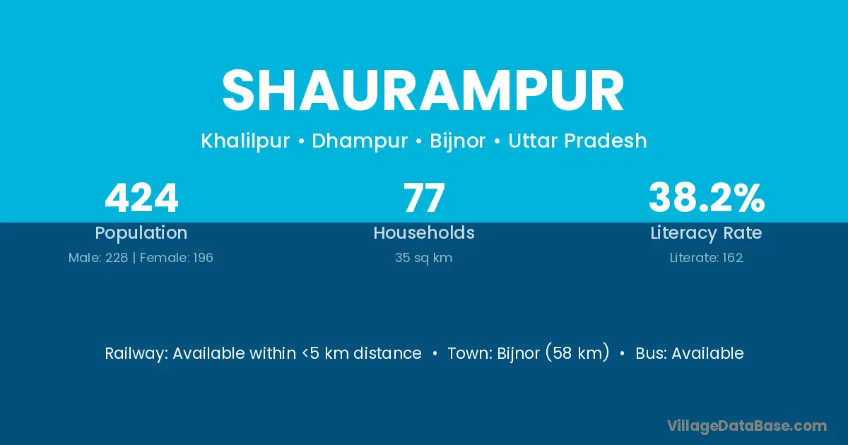 Bijnor (58 km) is the nearest town to Shaurampur village for major economic activities and is located approximately 58 km away.