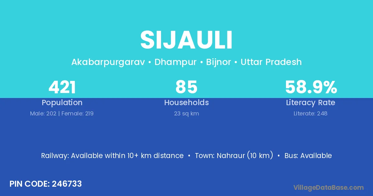 Nahraur (10 km) is the nearest town to Sijauli village for major economic activities and is located approximately 10 km away.