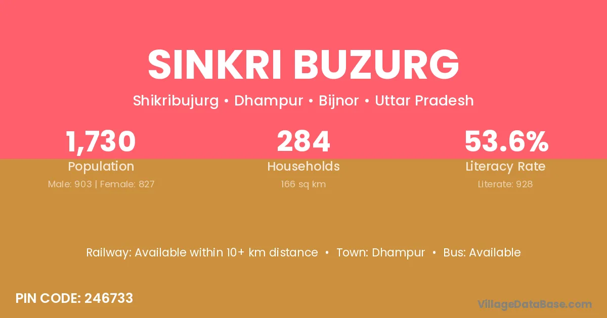 Dhampur is the nearest town to Sinkri Buzurg village for major economic activities