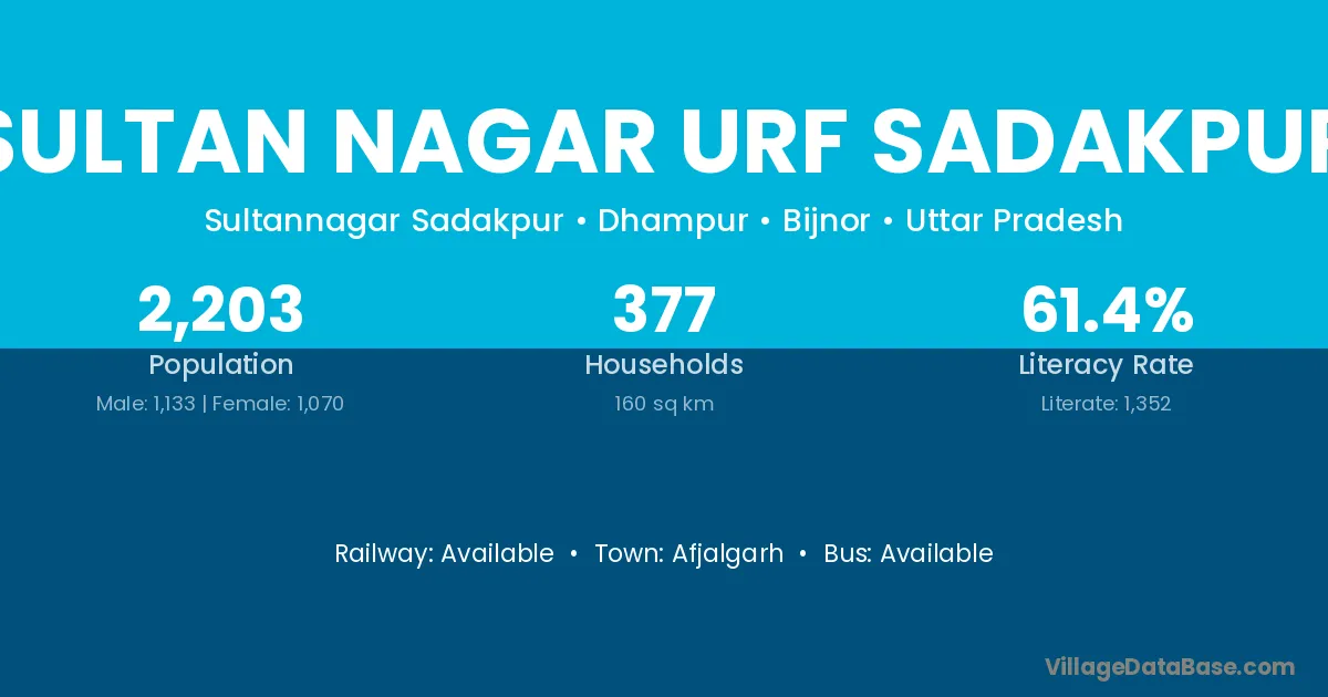 Afjalgarh is the nearest town to Sultan Nagar Urf Sadakpur village for major economic activities