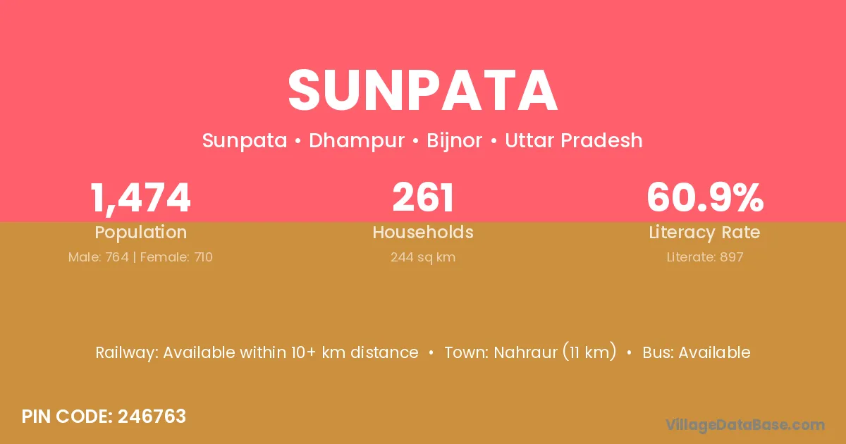 Nahraur (11 km) is the nearest town to Sunpata village for major economic activities and is located approximately 11 km away.
