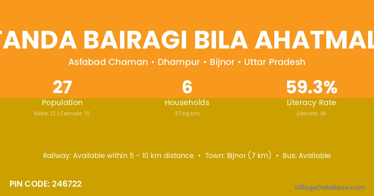 Bijnor (7 km) is the nearest town to Tanda Bairagi Bila Ahatmali village for major economic activities and is located approximately 7 km away.