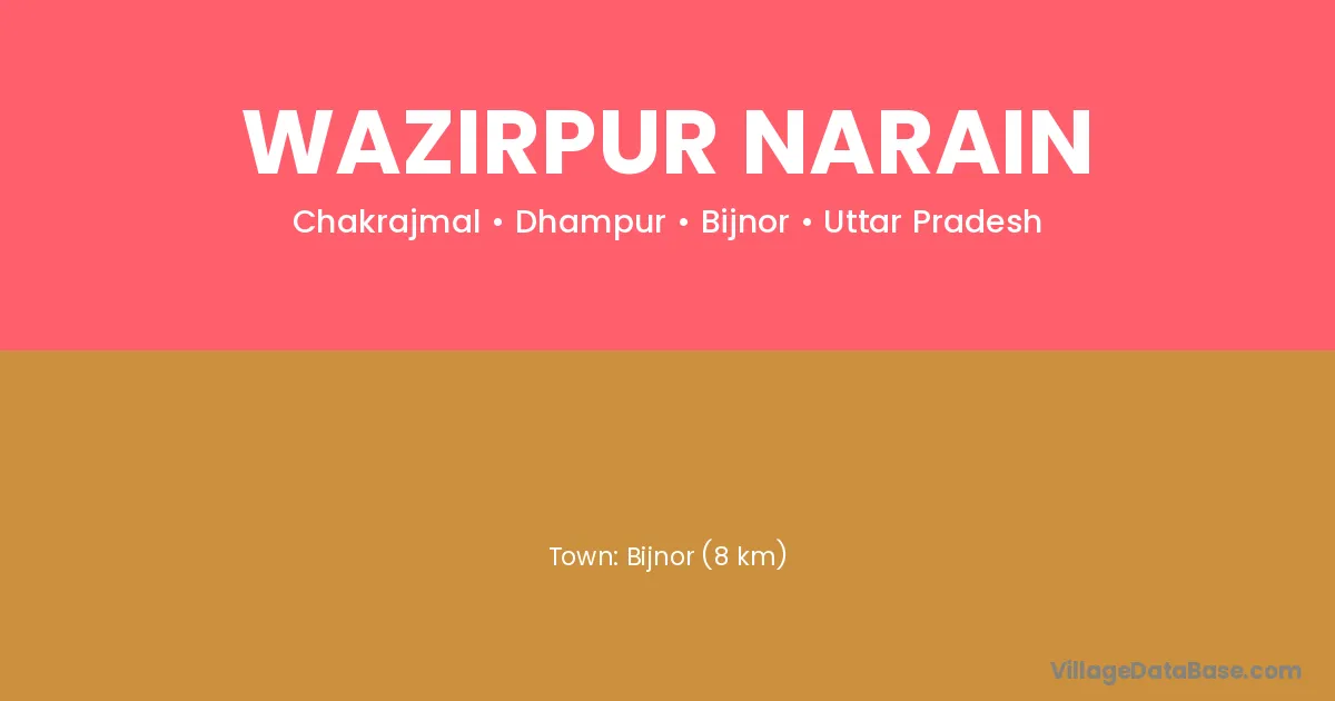 Bijnor (8 km) is the nearest town to Wazirpur Narain village for major economic activities and is located approximately 8 km away.