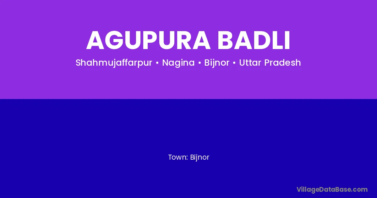 Bijnor is the nearest town to Agupura Badli village for major economic activities