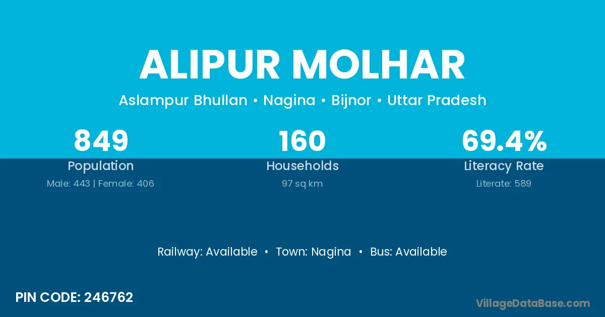 Nagina is the nearest town to Alipur Molhar village for major economic activities