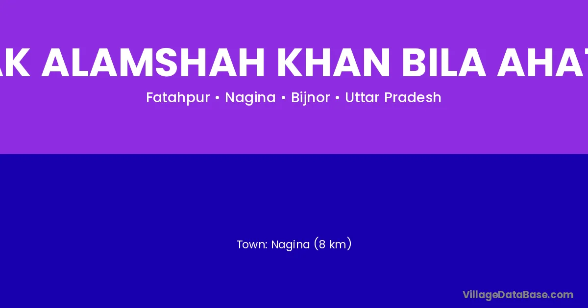 Nagina (8 km) is the nearest town to Chak Alamshah Khan Bila Ahatma village for major economic activities and is located approximately 8 km away.