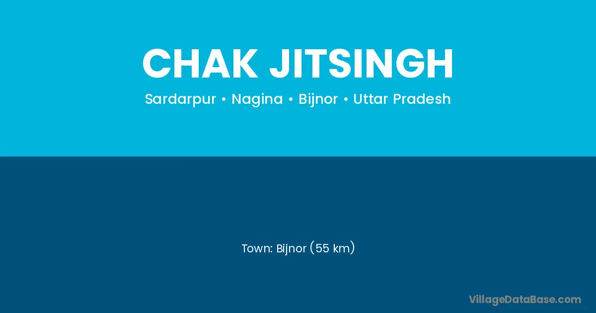 Bijnor (55 km) is the nearest town to Chak Jitsingh village for major economic activities and is located approximately 55 km away.