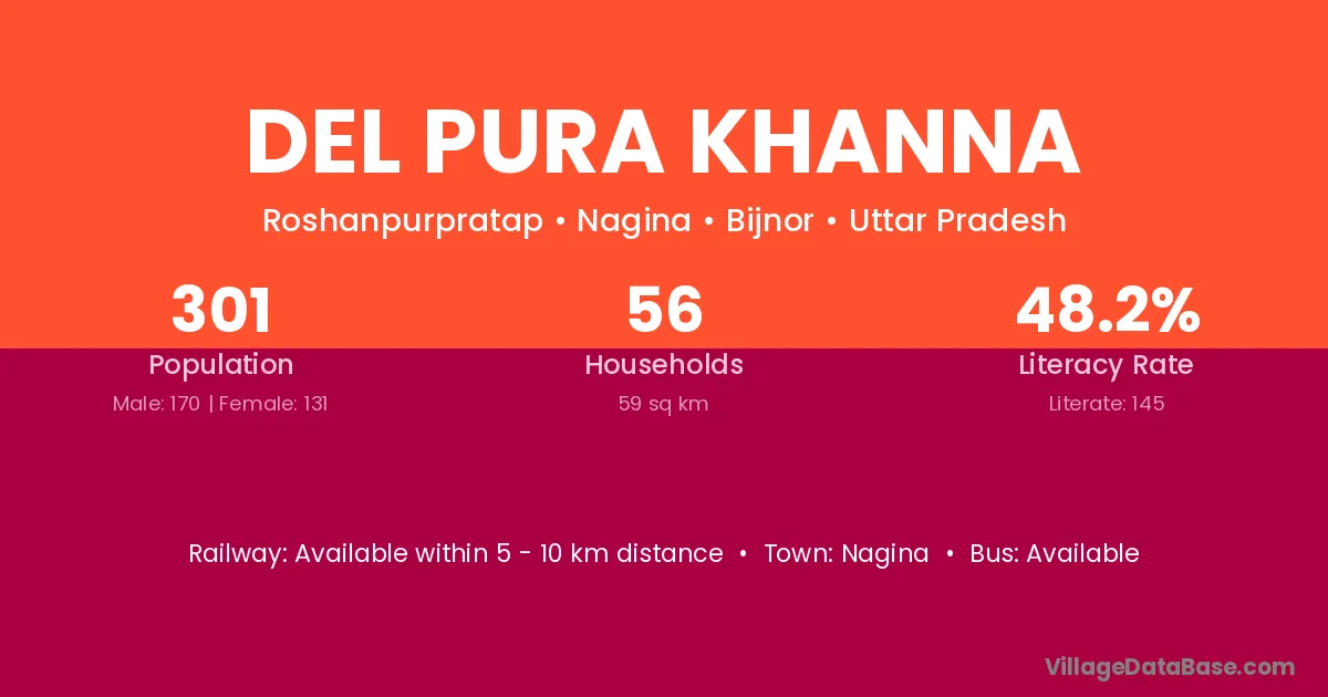Del Pura Khanna village has a total population of 301 people, of which 170 are males and 131 are females.
