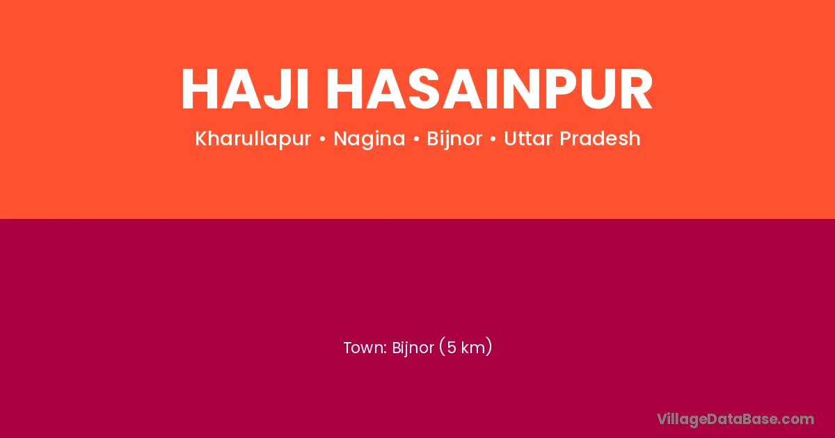 Bijnor (5 km) is the nearest town to Haji Hasainpur village for major economic activities and is located approximately 5 km away.