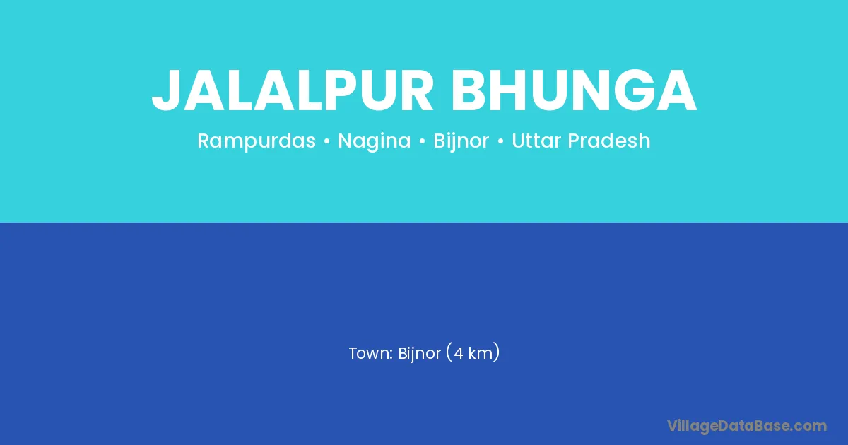 Bijnor (4 km) is the nearest town to Jalalpur Bhunga village for major economic activities and is located approximately 4 km away.