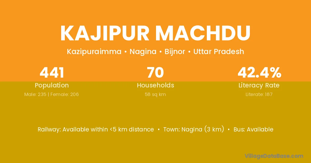Nagina (3 km) is the nearest town to Kajipur Machdu village for major economic activities and is located approximately 3 km away.
