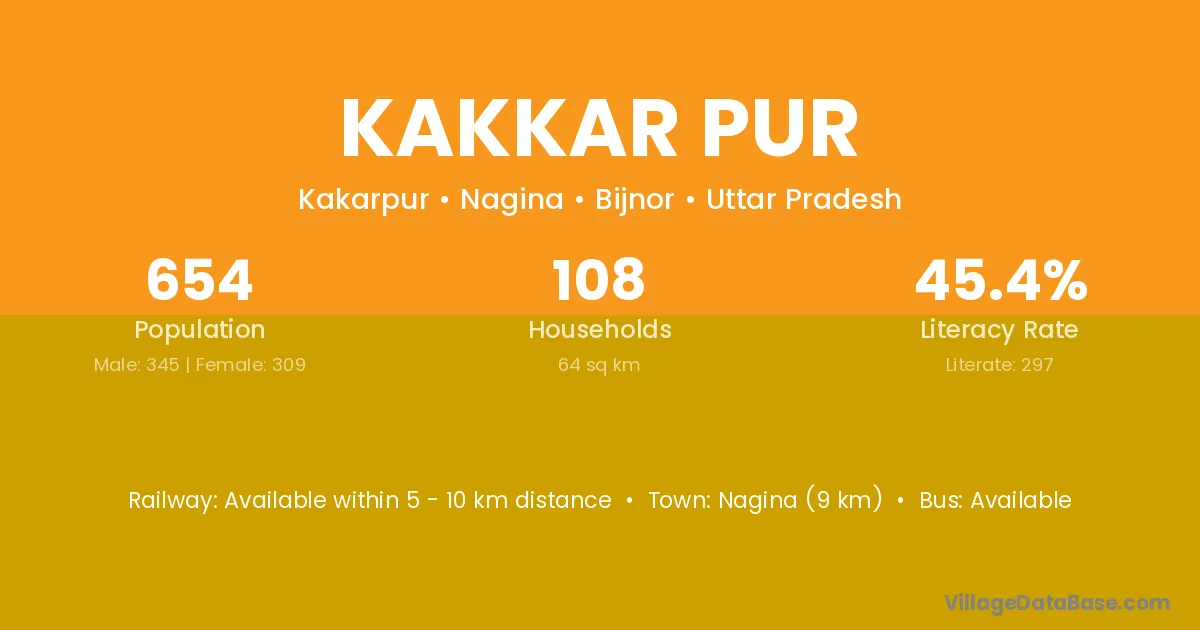 Nagina (9 km) is the nearest town to Kakkar Pur village for major economic activities and is located approximately 9 km away.