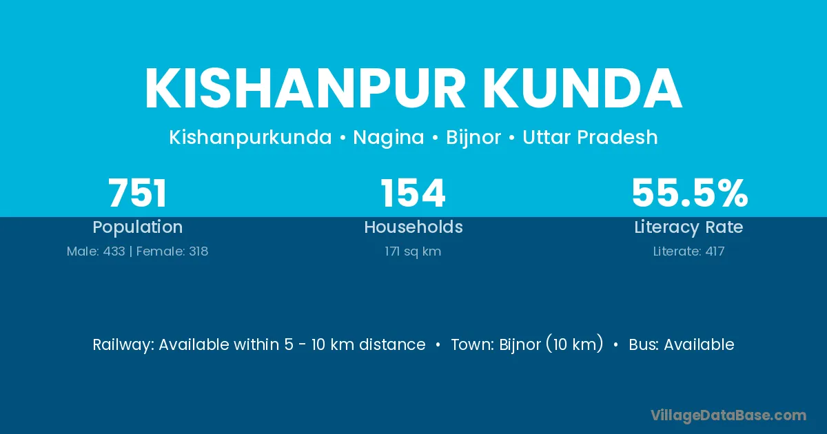 Bijnor (10 km) is the nearest town to Kishanpur Kunda village for major economic activities and is located approximately 10 km away.