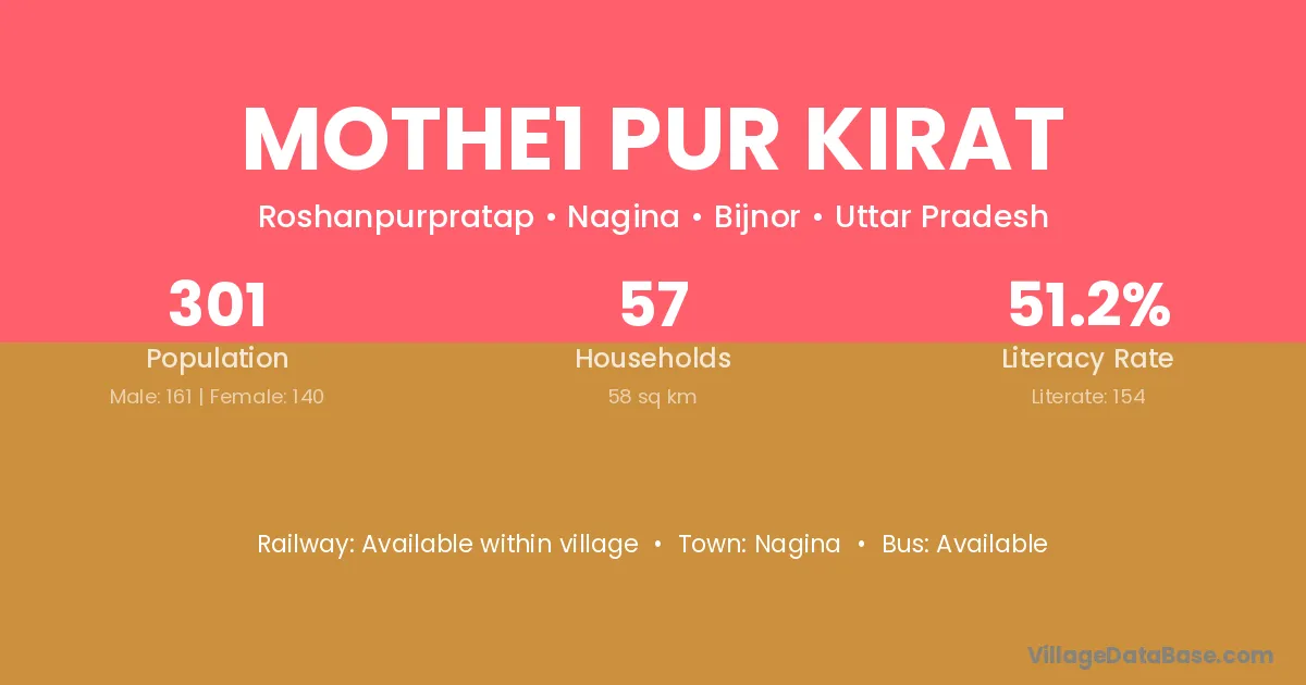 Mothe1 Pur Kirat village has a total population of 301 people, of which 161 are males and 140 are females.