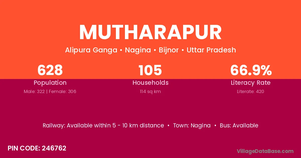 Mutharapur village has a total population of 628 people, of which 322 are males and 306 are females.
