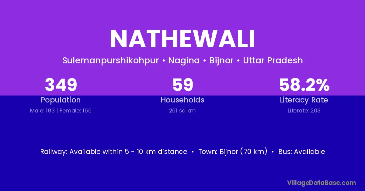Bijnor (70 km) is the nearest town to Nathewali village for major economic activities and is located approximately 70 km away.