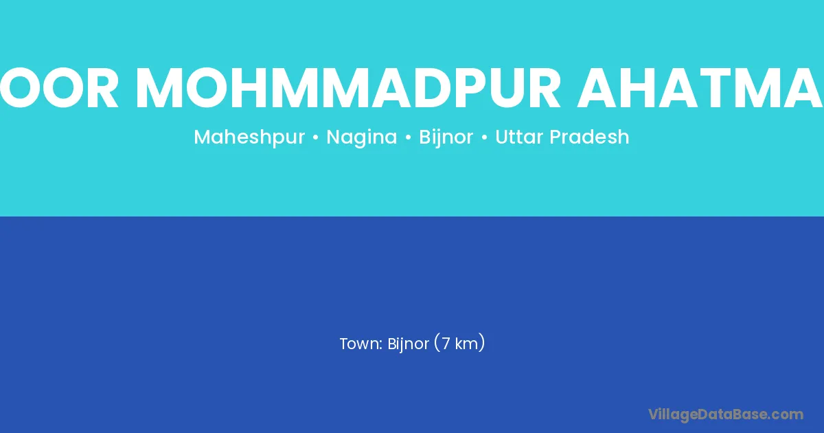 Bijnor (7 km) is the nearest town to Noor Mohmmadpur Ahatmali village for major economic activities and is located approximately 7 km away.