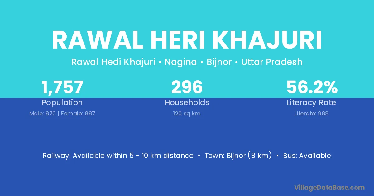 Rawal Heri Khajuri village has a total population of 1,757 people, of which 870 are males and 887 are females.