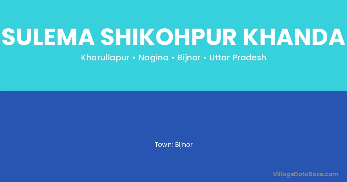 Bijnor is the nearest town to Sulema Shikohpur Khanda village for major economic activities
