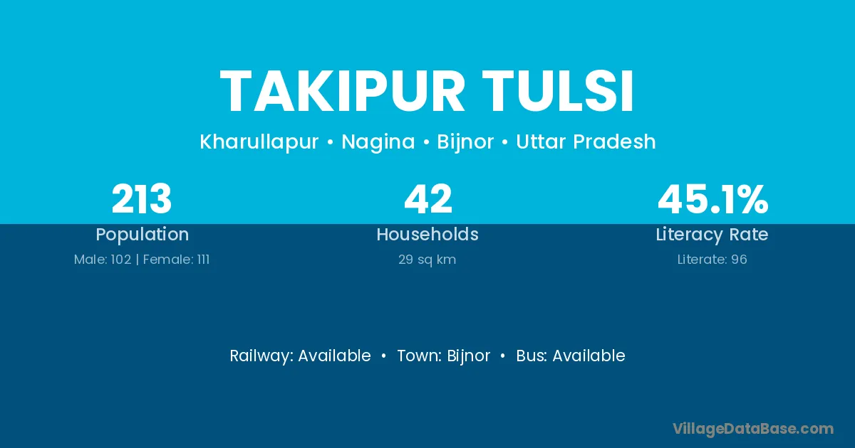 Bijnor is the nearest town to Takipur Tulsi village for major economic activities