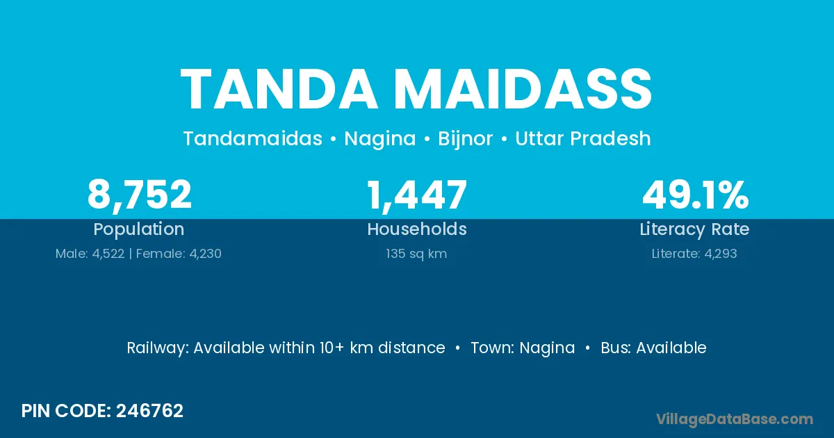 Nagina is the nearest town to Tanda Maidass village for major economic activities