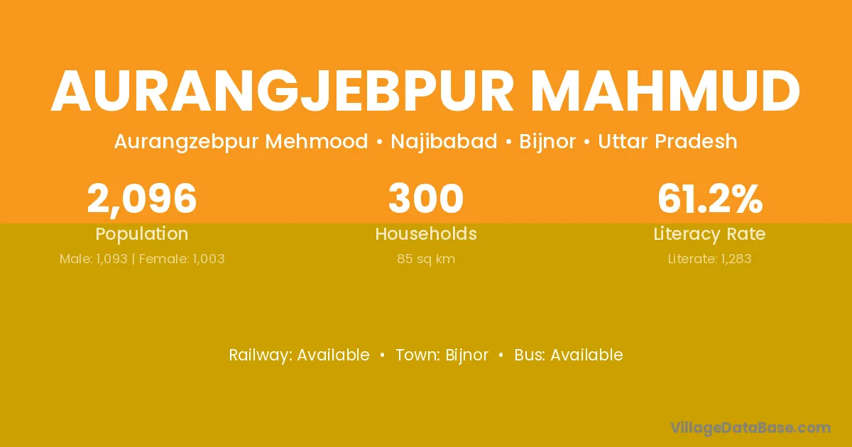 Aurangjebpur Mahmud village has a total population of 2,096 people, of which 1,093 are males and 1,003 are females.