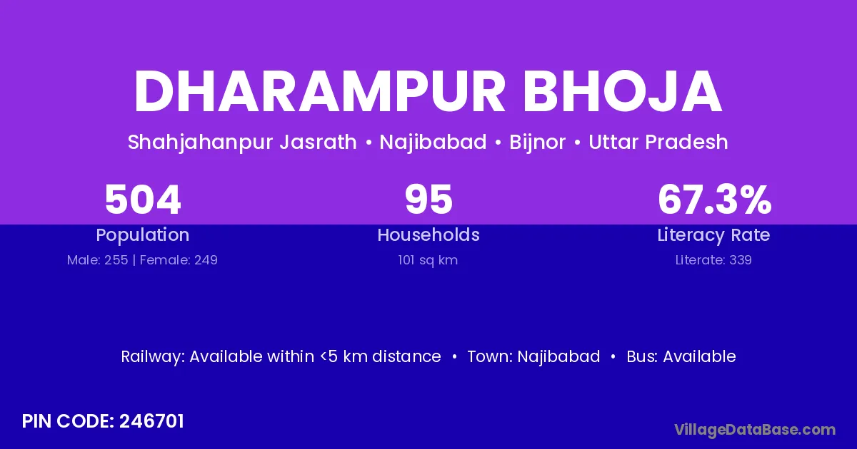Dharampur Bhoja village has a total population of 504 people, of which 255 are males and 249 are females.
