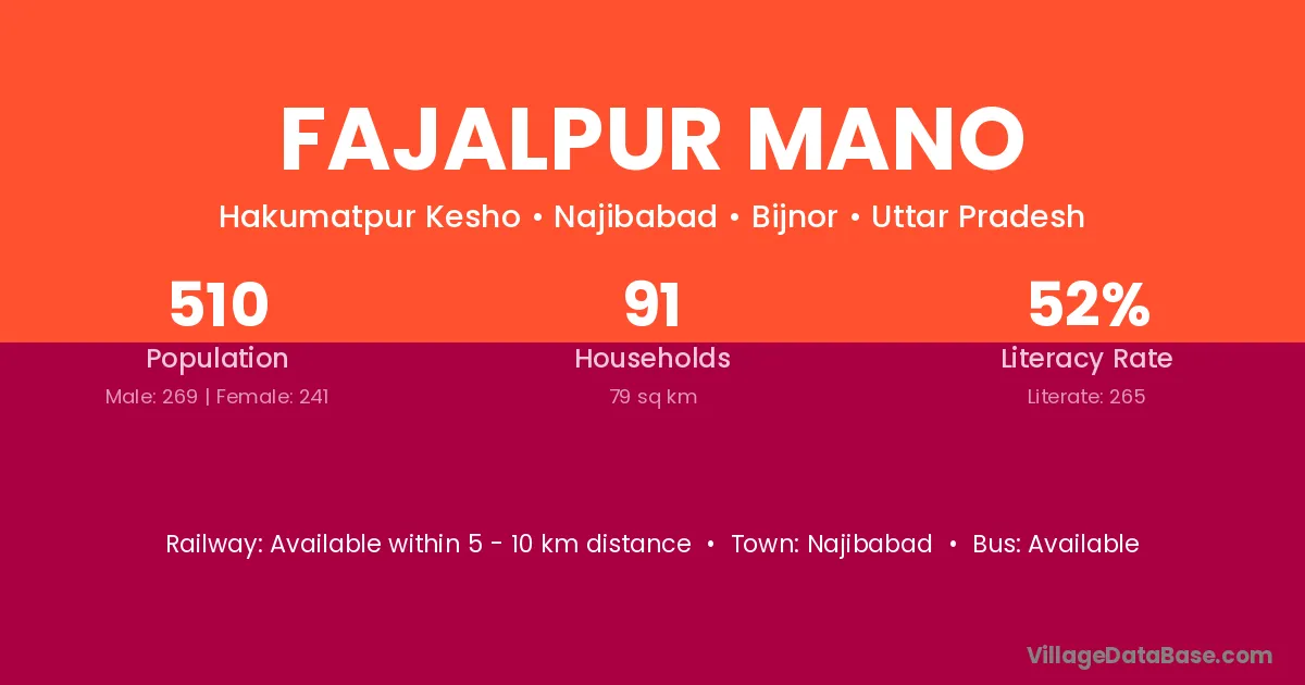 Fajalpur Mano village has a total population of 510 people, of which 269 are males and 241 are females.