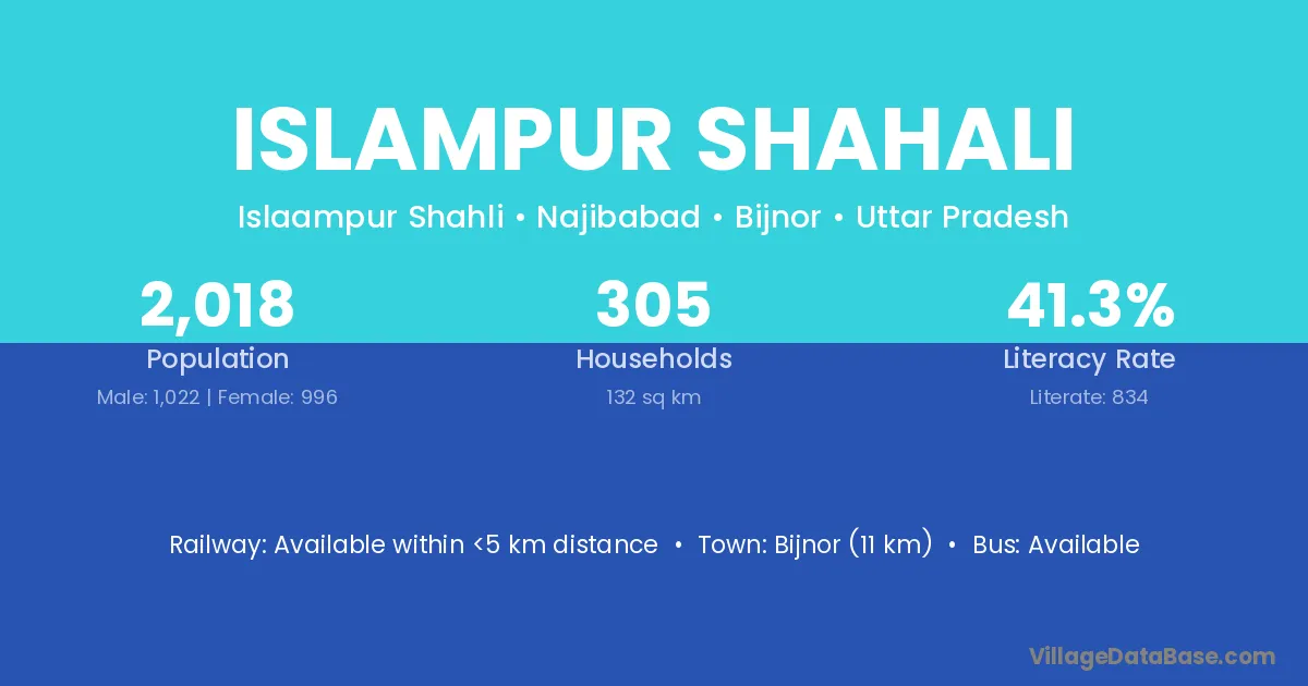 Bijnor (11 km) is the nearest town to Islampur Shahali village for major economic activities and is located approximately 11 km away.