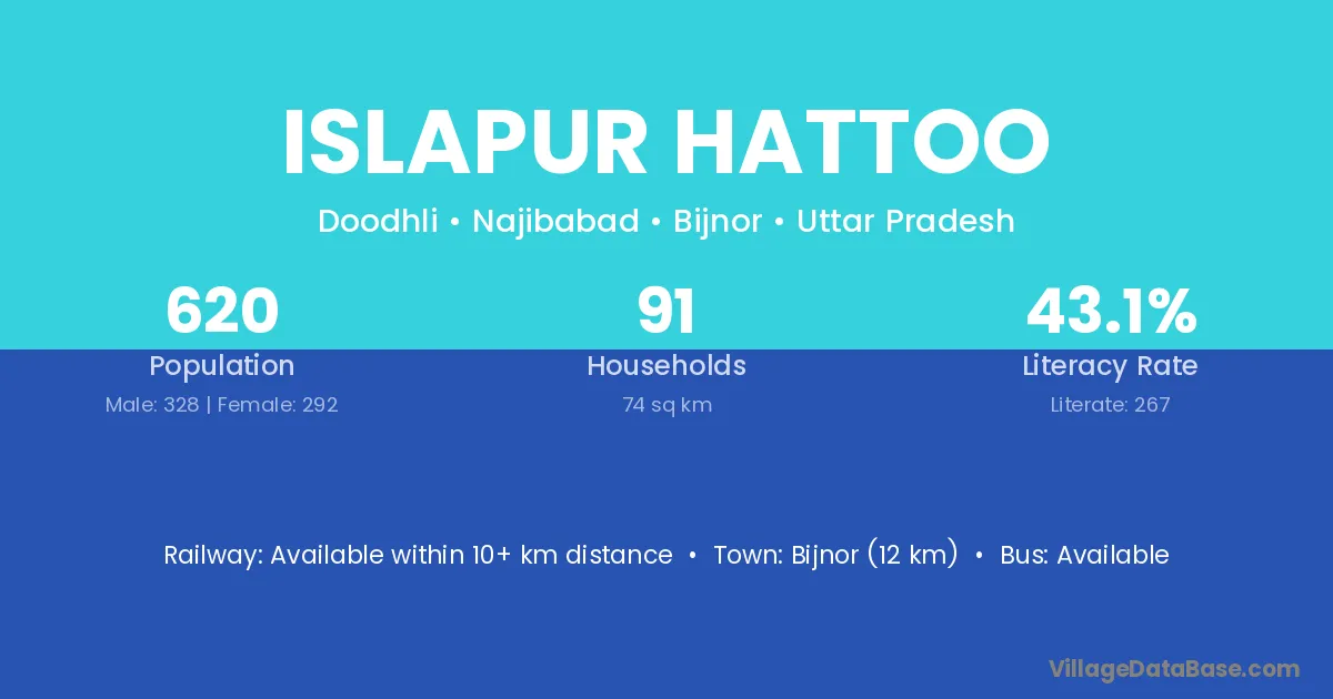Bijnor (12 km) is the nearest town to Islapur Hattoo village for major economic activities and is located approximately 12 km away.