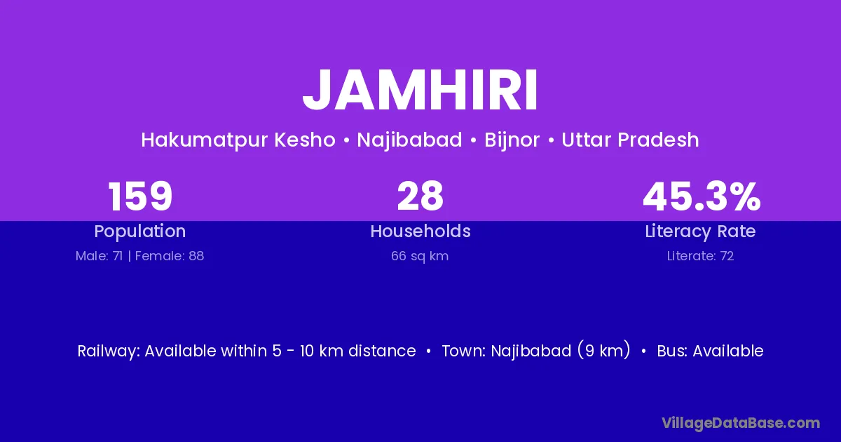 Najibabad (9 km) is the nearest town to Jamhiri village for major economic activities and is located approximately 9 km away.