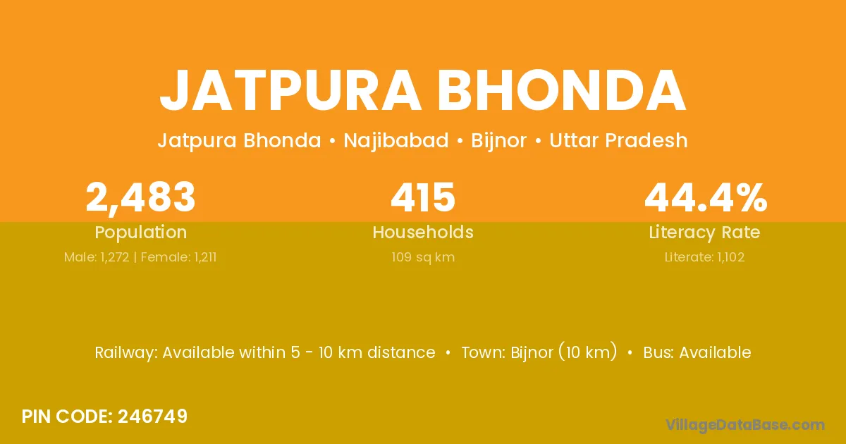 Bijnor (10 km) is the nearest town to Jatpura Bhonda village for major economic activities and is located approximately 10 km away.