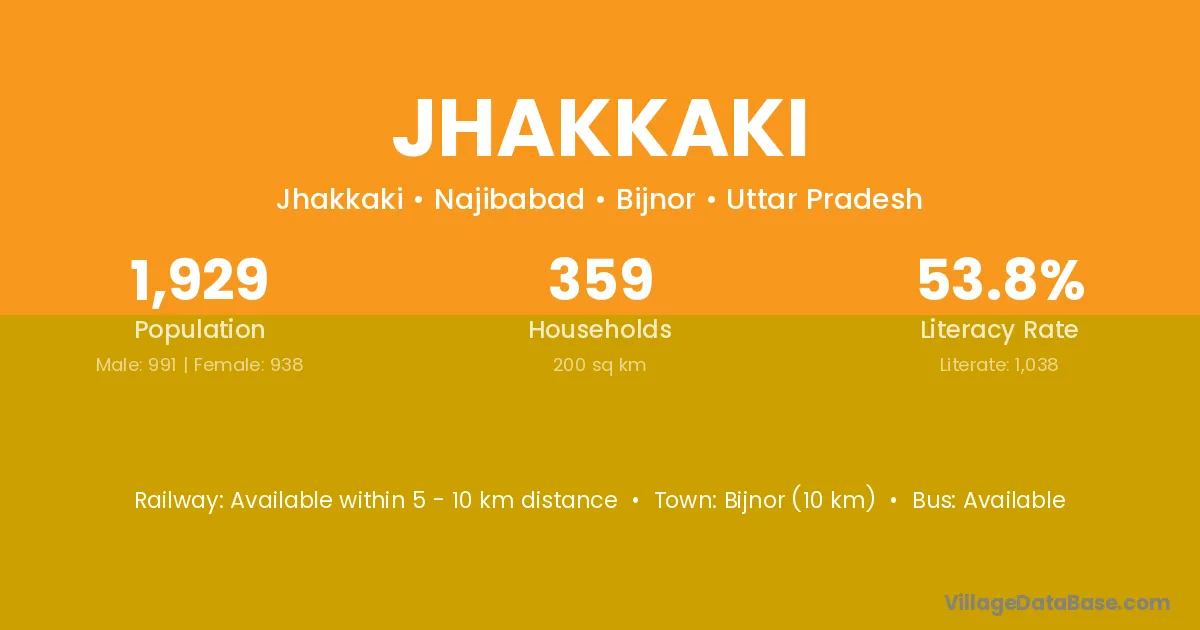 Bijnor (10 km) is the nearest town to Jhakkaki village for major economic activities and is located approximately 10 km away.