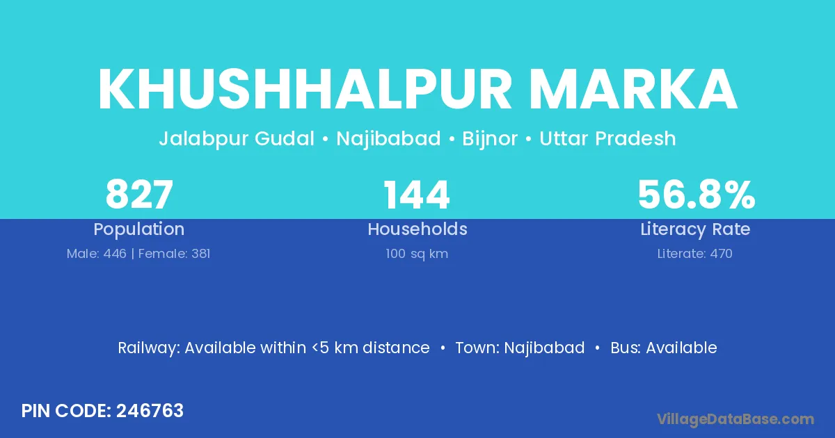 Najibabad is the nearest town to Khushhalpur Marka village for major economic activities