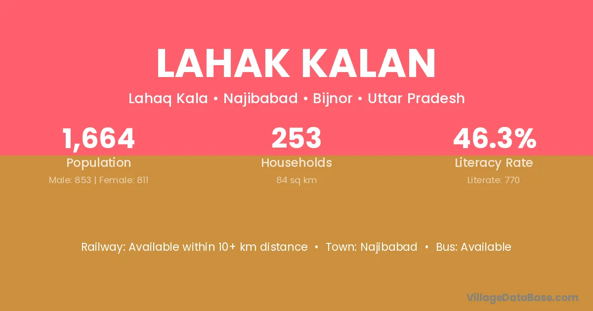 Najibabad is the nearest town to Lahak Kalan village for major economic activities