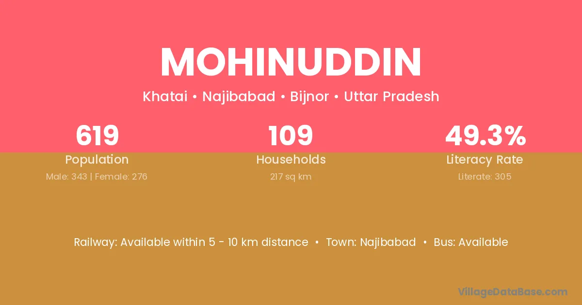 Najibabad is the nearest town to Mohinuddin village for major economic activities