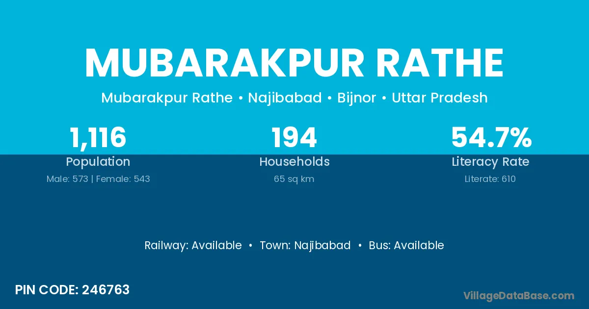 Najibabad is the nearest town to Mubarakpur Rathe village for major economic activities